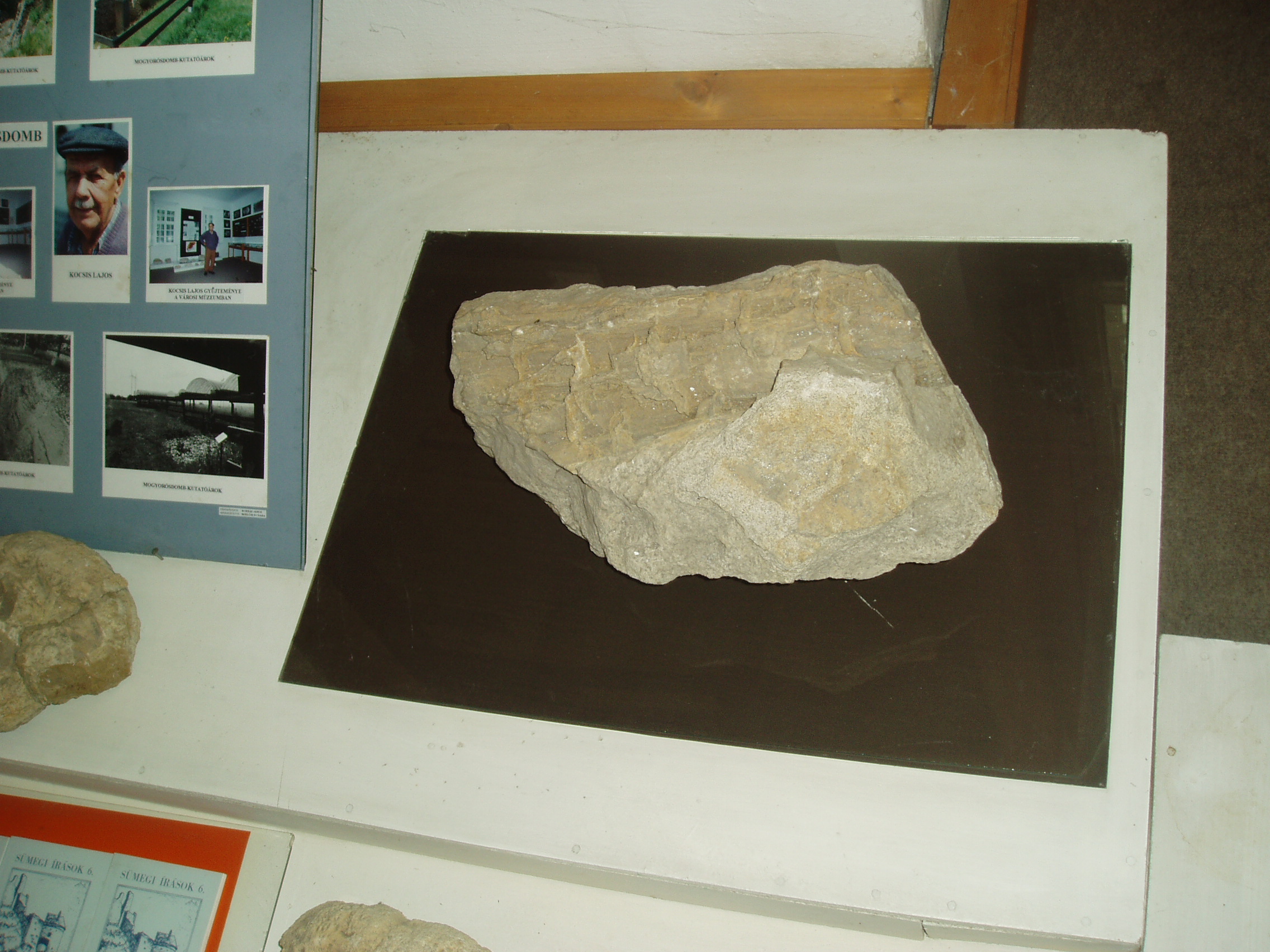 Nyilvános 958 | 1494 | Sümeg, Kisfaludy tér 2. Városi Múzeum | A Kisfaludy Sándor szülőházában lévő múzeum külön teremben mutatja be Kocsis Lajos geológiai gyűjteményét. Kocsis Lajos nyugdíjas bányász, aki hosszú évtizedeken keresztül lelkesen gyűjtötte a Bakony geológiai múltját őrző kövületeket. Magángyűjteményéből 1984-ben nyílt állandó kiállítás. Az egykori élet nyomai mellett a velük egyidőben képződött, iparilag jelentős ásványi nyersanyagok mintapéldányai is láthatók itt: bauxit, barnaszén, mangánérc. A múzeum tulajdonába jutott gyűjtemény közel 4000 tételt számlál. A fénykép 2007 júniusában készült. Felh. irod.: Sümegi kalauz. Sümeg, Sümegi Fórum Alapítvány, 1993 |