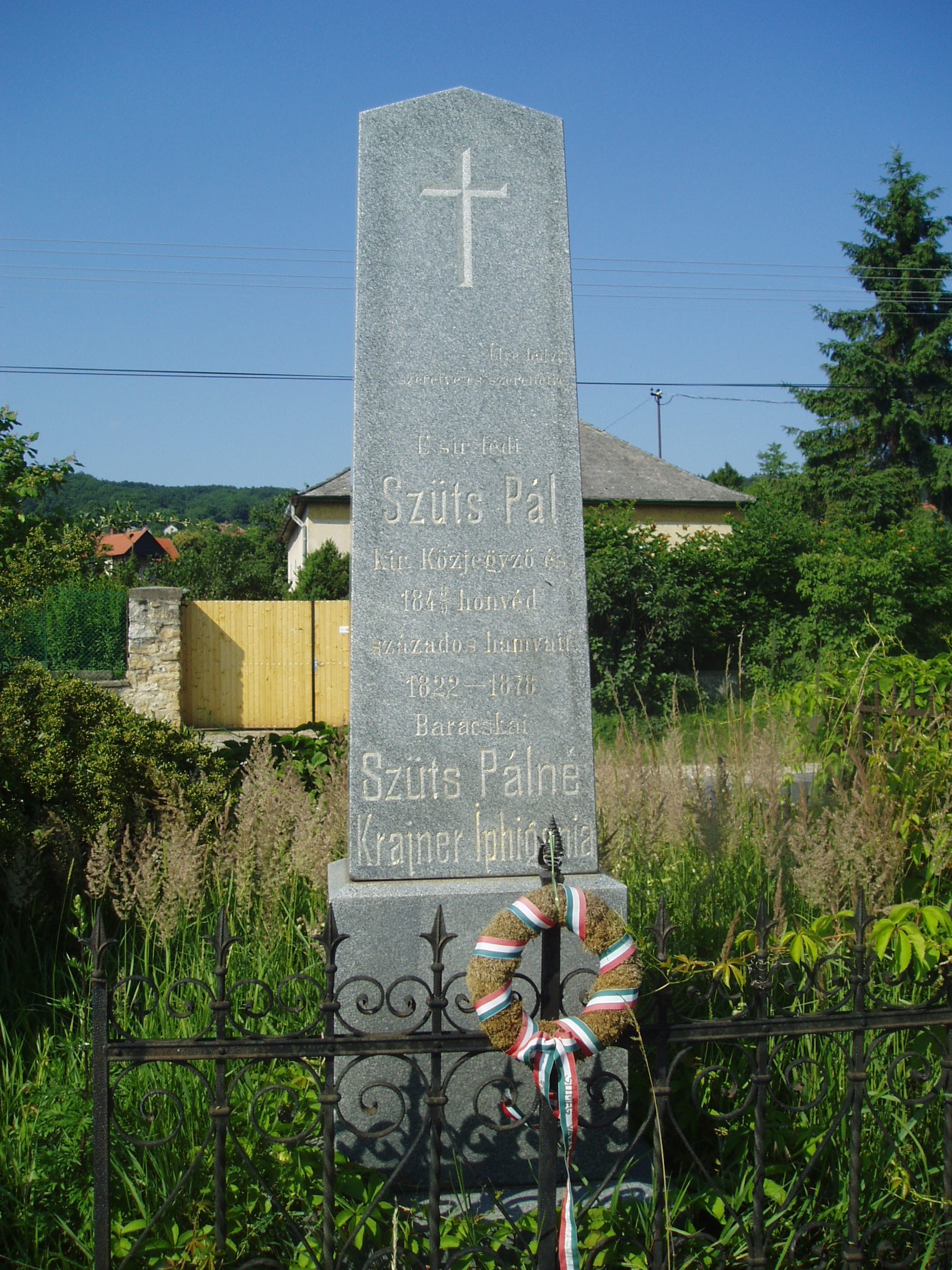 Nyilvános 964 | 1792 | Sümeg, Temető. Szűts Pál sírja | Sümeg délkeleti határában, a Tapolcára vezető út mellett emelkedő lankás domboldalon találjuk a város köztemetőjét. Helyét még Bíró Márton püspök jelölte ki; jelentősebb számban a XIX. század eleje óta kezdtek ide temetkezni. A temetődomb tetején áll az 1816-ban épített, későbarokk stílusú temetőkápolna. Körülötte a sümegi élet utolsó két évszázada szinte valamennyi híres személyiségének sírja fellelhető. Itt nyugszik Szűts Pál (1822-1878) ügyvéd, az 1848/49-es szabadságharc századosa. Alakulatával Perczel tábornok drávai hadtestében, illetve a Központi Mozgó Seregnél harcolta végig a szabadságharcot. A fénykép 2007 júniusában készült. Felh. irod.: Koppány Tibor - Kozák Károly: Sümeg útikalauz. Veszprém, Idegenforgalmi Hivatal, 1965 Sümegi kalauz. Sümeg, Sümegi Fórum Alapítvány, 1993 Miklósi-Sikes Csaba: Kőbe vésett történelem. A sümegi városi temetők története és sírjelei 1950-ig. Sümeg, Sümegi Fórum Alapítvány, 2002 Veszprém megyei életrajzi lexikon. Veszprém, Veszprém Megyei Önkormányzat Közgyűlése, 1998 |