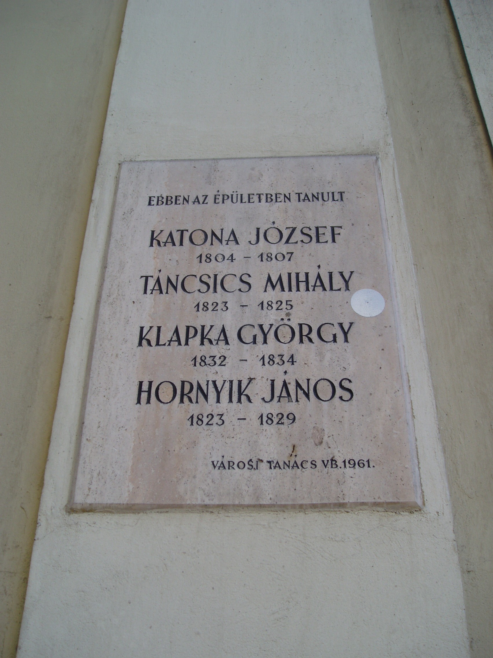 Nyilvános 1119 | 2185 | Kecskemét, Jókai utca 1. Piarista rendház és kollégium | A műemléki védelemmel óvott piarista rendház a mellette álló templommal együtt a város legszebb barokk épületegyüttese. A piarista atyákat a város egyik földesura, gróf Koháry István telepítette le Kecskeméten a XVIII. század elején, s 1712-ben alapítványt is tett templomuk, rendházuk és iskolájuk felépítésére. Az épületegyüttes fokozatosan, több ütemben készült el. A templomot nagy valószínűséggel Mayerhoffer András tervezte. Az oktatást a templom bal oldalán álló, 1720 és 1725 között, Paithmüller József tervei alapján emelt rendház helyiségeiben kezdték el. A jobb oldali iskolai szárnyat 1825–1832 között emelték, majd folyamatosan bővítették az épületet. Tanítás 1933-ig folyt benne. Ide járt iskolába 1804 és 1807 között Katona József, 1813-1815 között Táncsics Mihály, 1833-34-ben Klapka György, később Sík Sándor. Itt tanult az 1780-as években Szerelemhegyi Liebenberger András, a magyar zenés játék megteremtője, karnagy, valamint testvére, Lunkányi (Liebenber) János, Széchenyi István nevelője, műveinek első bírálója. A fénykép 2006 augusztusában készült. Felh. irod.: Heltai Nándor: Kecskemét. Kecskeméti Lapok, 1998 |