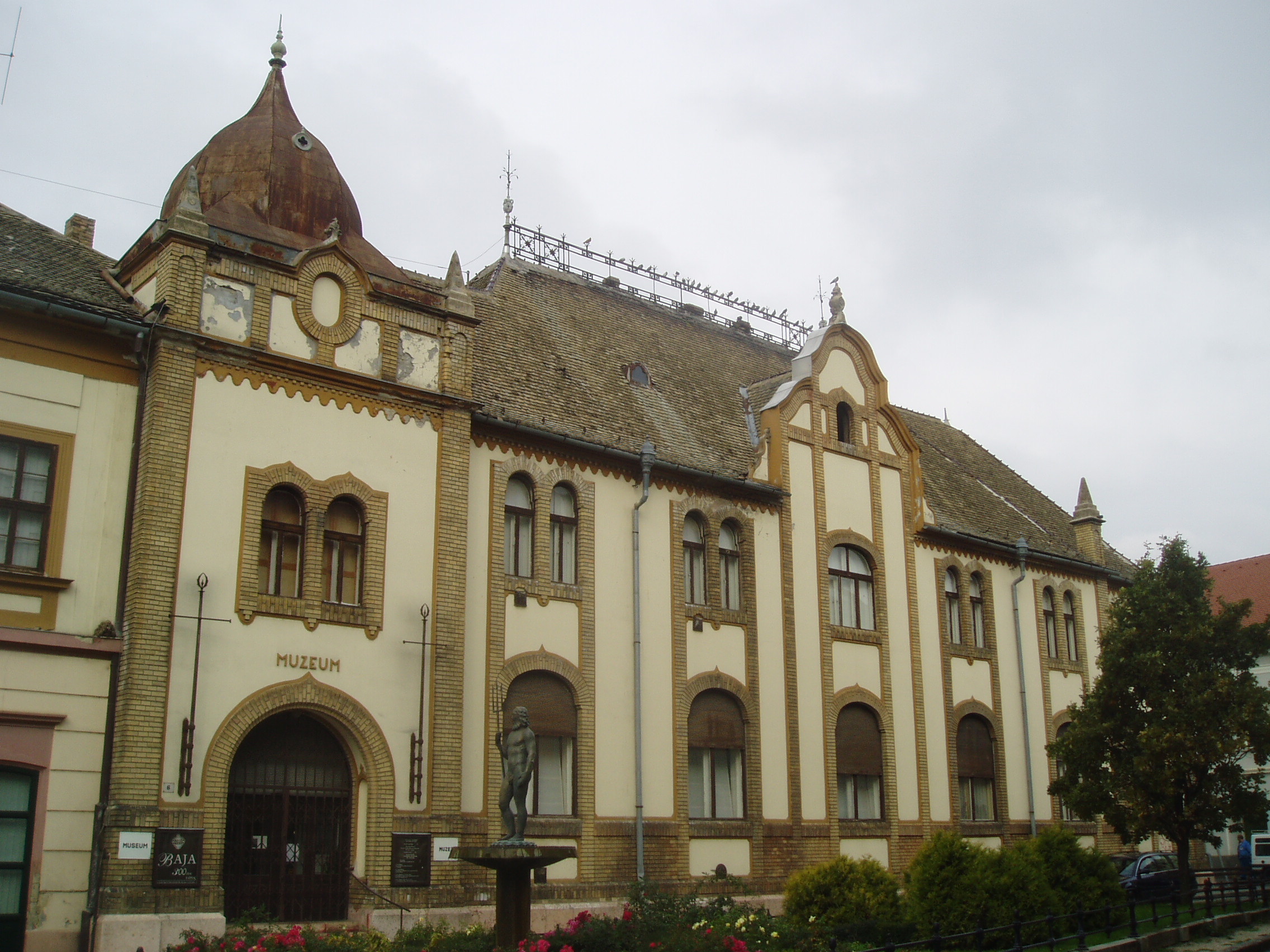 Nyilvános 1309 | 2901 | Baja, Deák Ferenc utca 1. Türr István Múzeum | A múzeumot 1935-ben hozta létre a város az egykori takarékpénztár épületében. A múzeum ma is ebben a városképi jelentőségű, részben klasszicista, részben szecessziós stílusú, Pártos Ödön tervei szerint 1894 körül emelt épületben működik. Sokoldalú, gazdag gyűjteményében a legnagyobb súllyal a régészeti és a néprajzi tárgyak szerepelnek. Gyarapodásához nagyban hozzájárult a múzeum névadójának, a bajai születésű Türr István (1825–1908) tábornoknak a hagyatéka. Emlékét domborműves tábla idézi a Deák Ferenc utcai bejárat mellett. Itt volt muzeológus a mellőztetés éveiben, 1958 és 1963 között Lükő Gábor néprajztudós. A képen az épület Roosevelt térre néző homlokzata látható. A fénykép 2007 októberében készült. Felh. irod.: Látnivalók Bács-Kiskun megyében. Miskolc, Well-PRess, 2002 Emlékkönyv a bajai múzeum 50 éves évfordulójára (1937-1987). Baja, 1989 |
