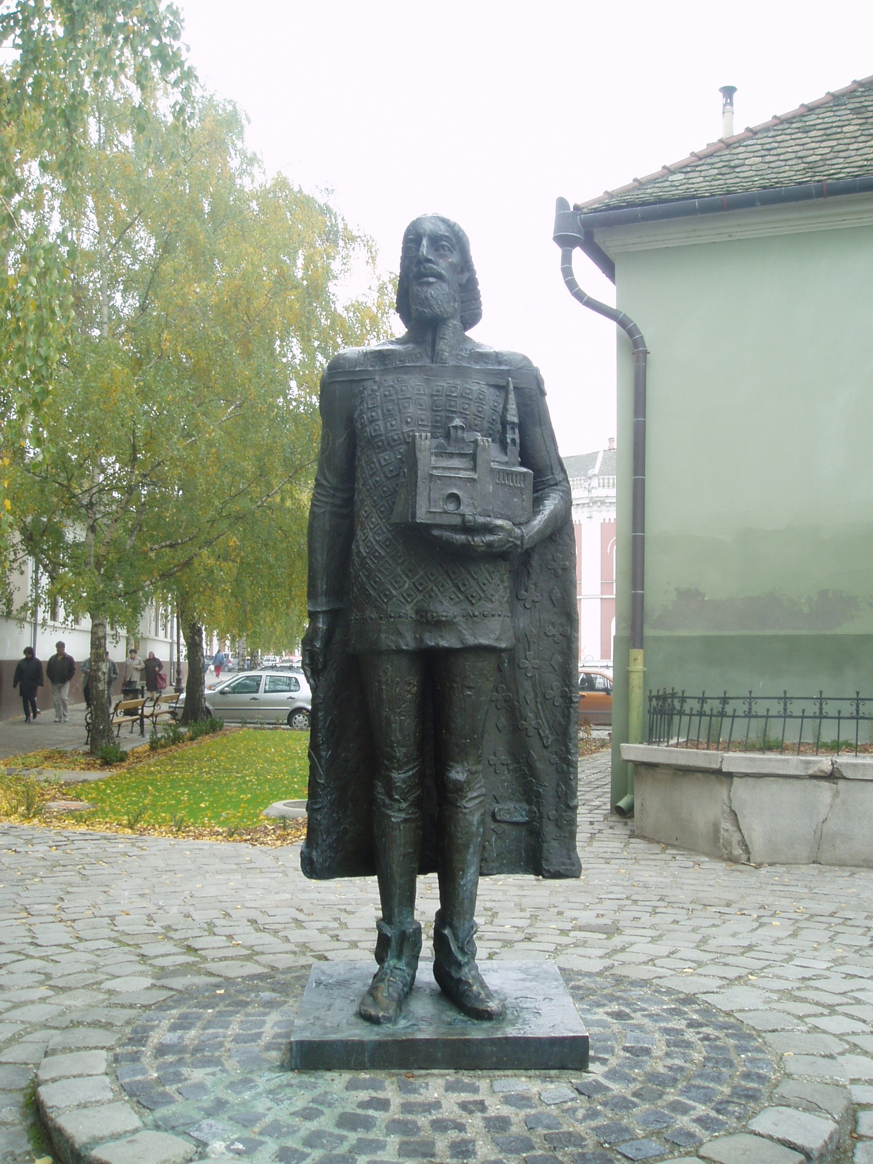 Nyilvános 970 | 1594 | Baja, Szent Imre tér 5. III. Béla szobra | A gimnázium előtt 1986-ban állították fel a névadó III. Béla bronzszobrát, Kő Pál alkotását. Az 1757-ben alapított egykori ferences iskola 1879-től a ciszterci renddé lett. Ezután vette fel III. Béla király nevét, aki a cisztereket letelepítette Magyarországon. A fénykép 2007 októberében készült. Felh. irod.: Bálint László: A bajai III. Béla Gimnázium. Bp. Tankönyvkiadó, 1989 |