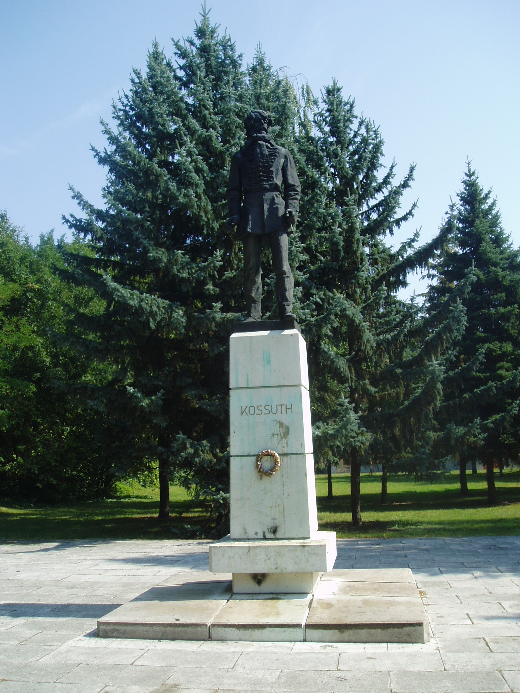 Nyilvános 948 | 1657 | Sárospatak, Iskolakert: Kossuth Lajos szobra | A Református Kollégium (lásd: Sárospatak, Rákóczi u. 1.) bejáratával szemben találjuk az Iskolakertnek nevezett parkot. Az 1980-as években természetvédelmi területté nyilvánított Iskolakert sajátos nemzeti érték, mely egyedülálló az országban. Sétányai mentén Patakhoz kötődő jeles személyiségek szobrai állnak. Kossuth Lajos (1802-1894) egész alakos bronzszobra az Iskolakert díszterén található. Marton László alkotását 1973-ban avatták fel. A nagy államférfi az 1819/20-as tanévben volt a Református Kollégium (lásd: Sárospatak, Rákóczi u. 1.) diákja. A fénykép 2007 augusztusában készült. Felh. irod.: Látnivalók Borsod-Abaúj-Zemplén megyében. Miskolc, Well-PRess, 1995 www.sarospatak.hu/nevezetessegek Erős Zoltán: Magyar irodalmi helynevek A-tól Z-ig. Bp. Kis-Lant Kiadó, 1995 |