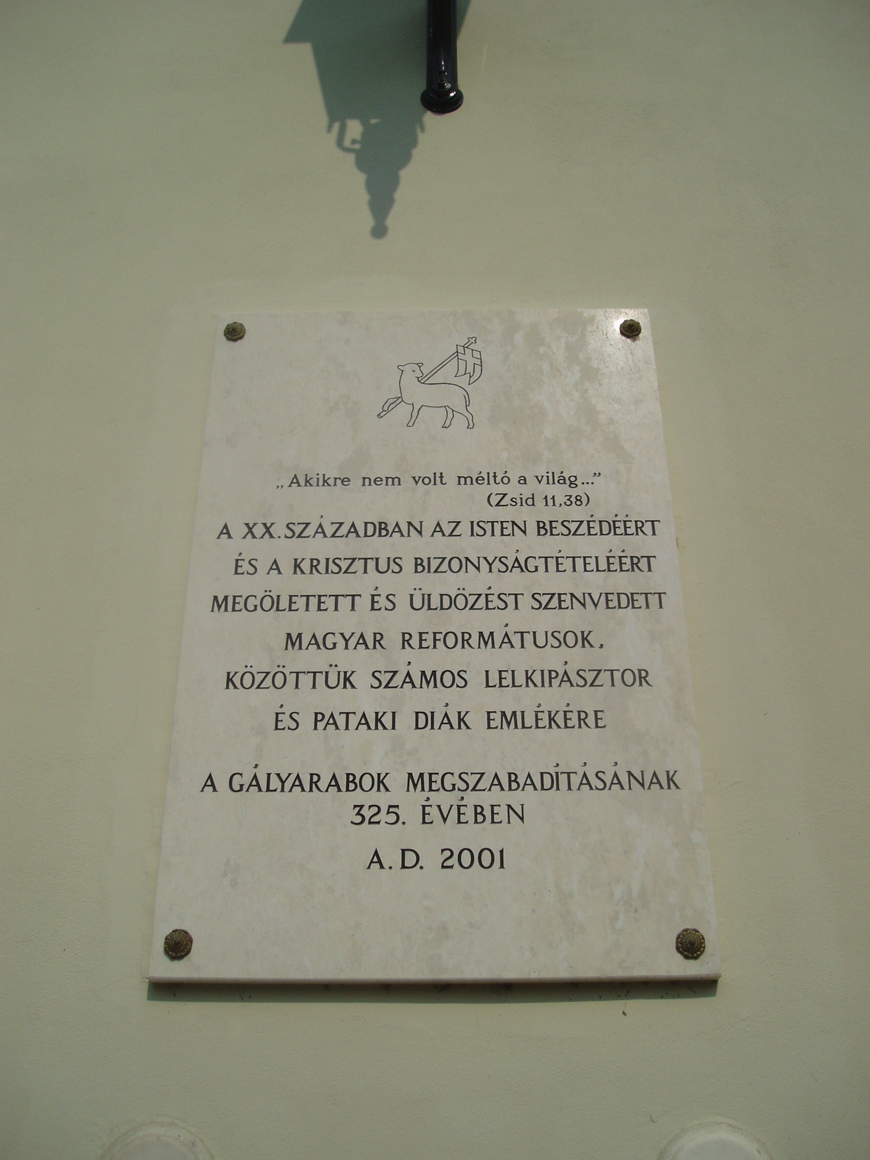 Nyilvános 930 | 1420 | Sárospatak, Rákóczi utca 1. Református Kollégium | A kollégium főépülete, a Nagy Kollégium a Rákóczi út északi végén található, mely 1804–1814 között korai klasszicista stílusban épült. Szép ráccsal ellátott, háromíves nyílású kapuzat vezet be az un. „nagyportá”-ba, amelyet két sor vaskos pillér három hajóra oszt. Kétoldalt a falakon az iskolatörténet néhány fontosabb eseményének, illetve a kollégium nagy alakjainak bronz domborművű ábrázolásait helyezték el. A képen látható feliratos táblát az egykori gályarab pataki diákok megszabadításának 325. évfordulóján, 2001-ben állították. 1673-ban, a Wesselényi-összeesküvés (lásd: Sárospatak, Szent Erzsébet u. 19. Sub Rosa) leleplezése után I. Lipót császár református papokat és tanítókat ítélt gályarabságra. Közülük huszonketten pataki diákok voltak. Az ellenreformáció áldozatait 1676. február 11-én Ruyter holland admirális váltotta ki a rabságból és küldte haza (lásd még: Hajdú-Bihar megye/Debrecen, Emlékkert). A fénykép 2007 augusztusában készült. Felh. irod.: Détsy Mihály: Sárospatak. Bp. Corvina, 1974 Látnivalók Borsod-Abaúj-Zemplén megyében. Miskolc, Well-PRess, 1995 www.sarospatak.hu/nevezetessegek |