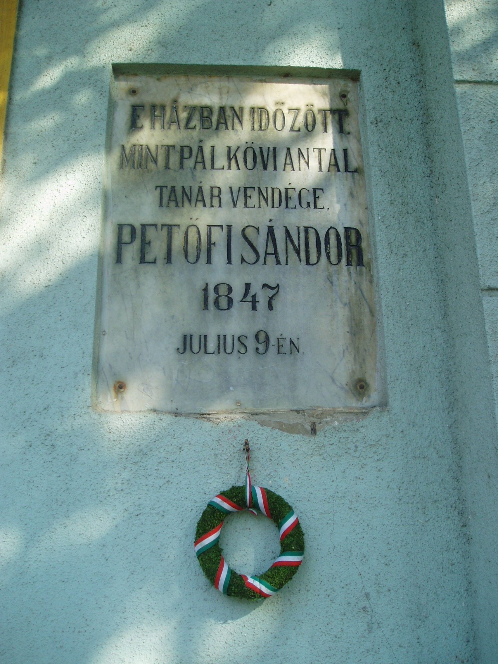 Nyilvános 922 | 1385 | Sárospatak, Rákóczi utca 17. | Itt lakott Pálkövi Antal kollégiumi tanár, akinek lakásán vendégeskedett 1847. július 9-én Petőfi Sándor. Petőfi erdélyi útja során látogatta meg Sárospatakot, Miskolcról jött a Hegyalján keresztül. Délután érkezett a városba s Pálkövi tanárnál szállt meg. Másnap Sátoraljaújhelyre ment meglátogatni barátját, Kazinczy Gábort, Kazinczy Ferenc unokaöccsét (lásd: Sátoraljaújhely, Dózsa Gy. u. 11.), útba ejtve Széphalmot (lásd: Széphalom, Kazinczy Mauzóleum) is. A költő Sárospatakról keltezte XI. Úti levelét. A fénykép 2007 augusztusában készült. Felh. irod.: Látnivalók Borsod-Abaúj-Zemplén megyében. Miskolc, Well-PRess, 1995 Erős Zoltán: Magyar irodalmi helynevek A-tól Z-ig. Bp. Kis-Lant Kiadó, 1995 |
