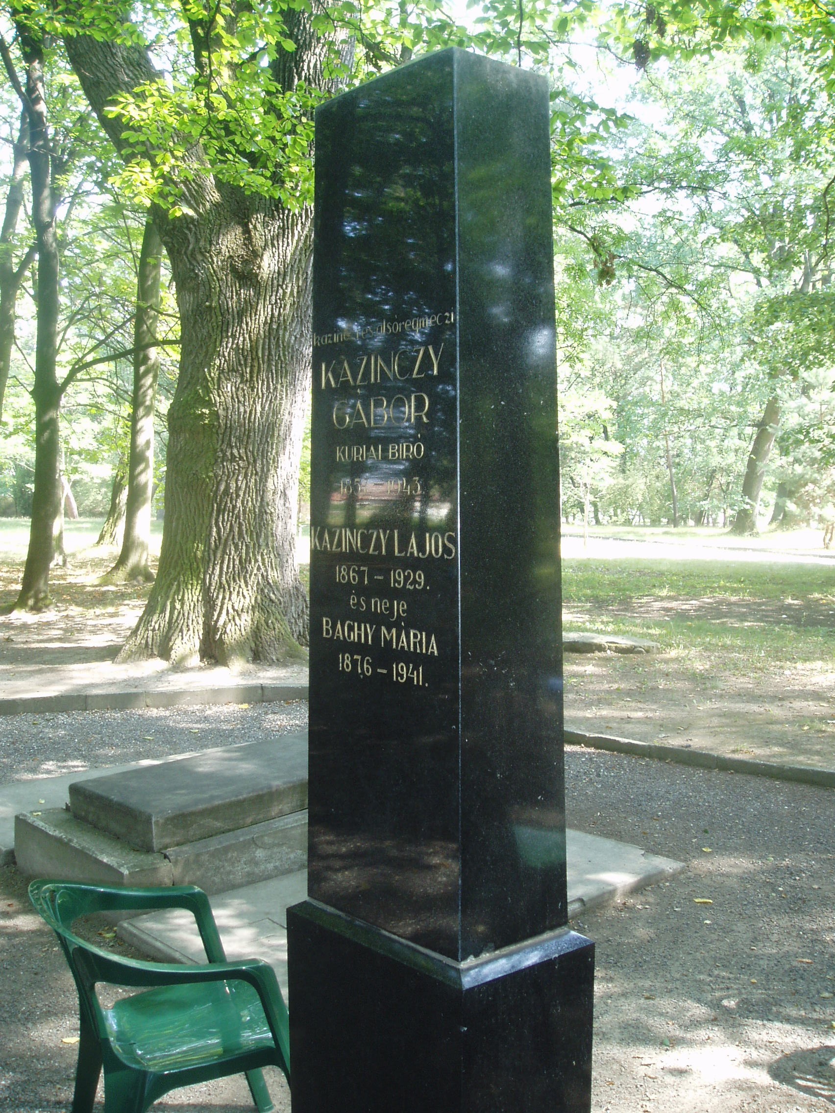 Nyilvános 948 | 1513 | Széphalom: A Kazinczy család sírkertje | A Kazinczy Emlékcsarnok parkja - Kazinczy Ferenc egykori kúriájának kertje - ma természetvédelmi terület. A mauzóleumból fasor vezet a Kazinczy család sírkertjébe. A kis temető helyét 1806-ban, első gyermeke, az egyéves korában elhunyt Iphigenia halálakor Kazinczy maga jelölte ki. Már akkor megírta barátainak, hogy felesége és ő is oda fognak temetkezni. Kazinczy és felesége sírja körül négy gyermekük, két unokájuk, három dédunokájuk és más rokonuk nyugszik. A képen Kazinczy Gábor kúriai bíró (1857-1943), Kazinczy Ferenc unokája (Bálint nevű fiának fia) és Kazinczy Lajos (1856-1929), az író dédunokája és felesége sírja látható. A fénykép 2007 augusztusában készült. Felh. irod.: Látnivalók Borsod-Abaúj-Zemplén megyében. Miskolc, Well-PRess, 2004 www.vendegvaro.hu Busa Margit: Adalékok a Kazinczy család történetéhez. = Széphalom. A Kazinczy Ferenc Társaság Évkönyve 12. kötet, 2002 |