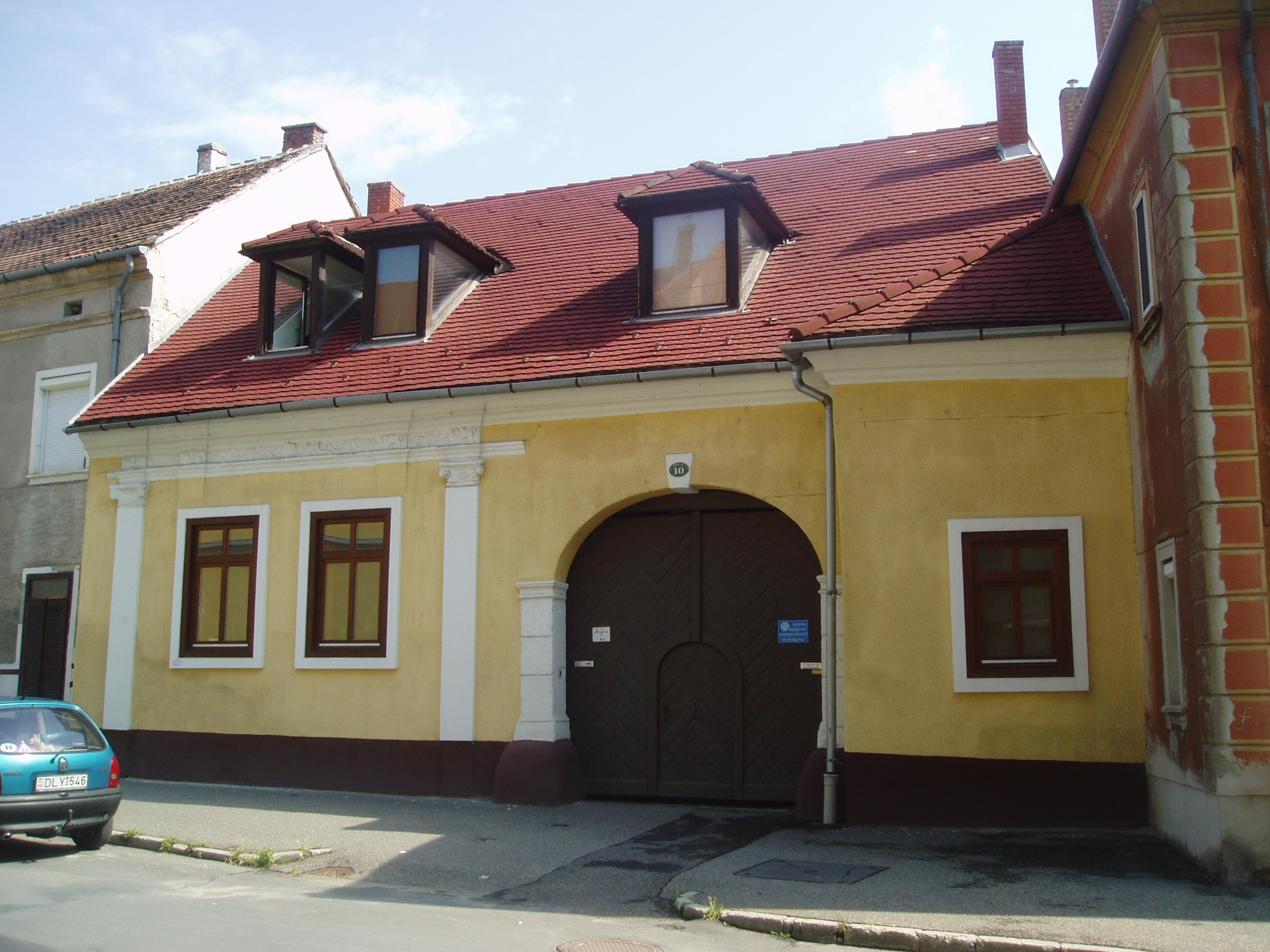 Nyilvános 994 | 1522 | Sopron, Bécsi út 10. | A földszintes barokk lakóház a XVIII. század közepe táján kapta mai alakját. Előzőleg Esterházy herceg tulajdonában volt, később iparosok birtokolták.Jobboldalt nyíló kapuját toszkán fejezetes pillérek és záróköves kosárív keretezi. A fénykép 2008 júniusában készült. Felh. irod.: Czellár Katalin: Sopron. 3. jav. kiad. Bp. Panoráma, 2000 |
