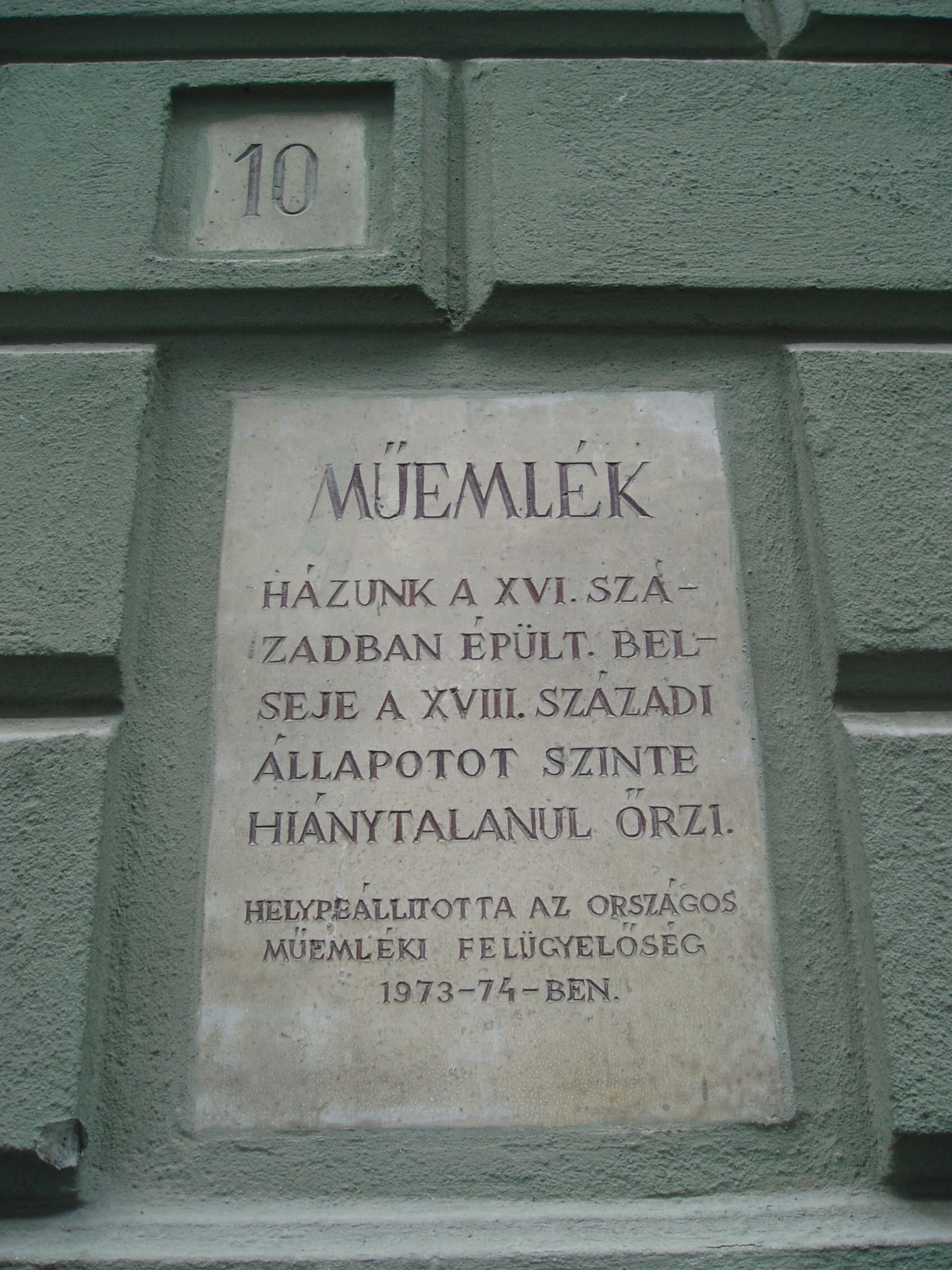 Nyilvános 880 | 1255 | Sopron, Szent György utca 10. | Az egyemeletes barokk lakóház a XVI. században épült. A XIX. század második felében erősen átalakított homlokzata a XVIII. századból származik. Az épület belseje csaknem hiánytalanul őrzi XVIII. századi állapotát. Emeleti, boltozott utcai szobáiban virágdíszes festés látható. A kép 2008 júniusában készült. Felh. irod.: Czellár Katalin: Sopron. 3. jav. kiad. Bp. Panoráma, 2000 |