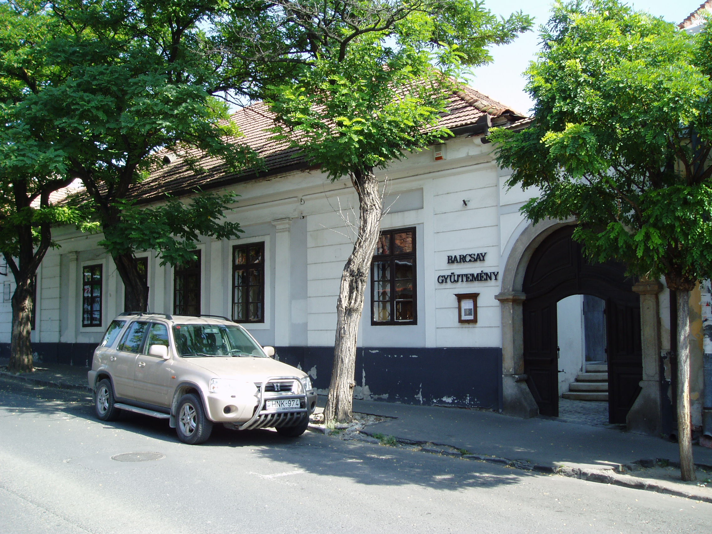 Nyilvános 1004 | 1787 | Szentendre, Dumtsa Jenő utca 10. | A XIX. zázadban épült polgárház 1978 óta a Barcsay Múzeum otthona. Barcsay Jenő (1900-) 1929-ben jött először Szentendrére, s azóta az év egy részét itt töltötte. Ezt írta a város szerepéről életében és művészetében: "Szentendrén éltem és Szentendrén alakítottam ki festészetemet, azt a valamit, amiért nekem érdemes volt küzdenem és élnem. A Szentendrén látott dolgokban, a természetben látott jelenségekben élet van, művészet van. Élnek azok a formák, színek, vonalak, amelyeket csak festő vehet észre..." A ház másik nevezetessége, hogy 1824. december 3-án itt született Stéger Ferenc (1824-1911) operaénekes. A patikusnak tanult fiatalember Európa–szerte híres hőstenorrá vált: rendszeresen vendégszerepelt Prágában, Bécsben, de énekelt Barcelonában, Bukarestben és Itália több színházában. 1848–1852 és 1873–1874-ben a pesti Nemzeti Színház tagja volt, Erkel színpadi hőseinek, valamint a francia és olasz tenorszerepeknek utolérhetetlen megszólaltatója. Élete alkonyán szülővárosába vonult vissza, itt hunyt el; a Katolikus Kálvária kertjében nyugszik. A fénykép 2005 szeptemberében készült. Felh. irod.: Szentendre. Szerk. Sándyné Wolf Katalin. Bp. Panoráma, 1985 Pethő Németh Erika- G. Sin Edit: Írók, költők Szentendrén. Szentendre, 1990 Erkel Ferencz emlékkönyv. Szerk. Fabó Bertalan. Bp. Pátria, 1910 |