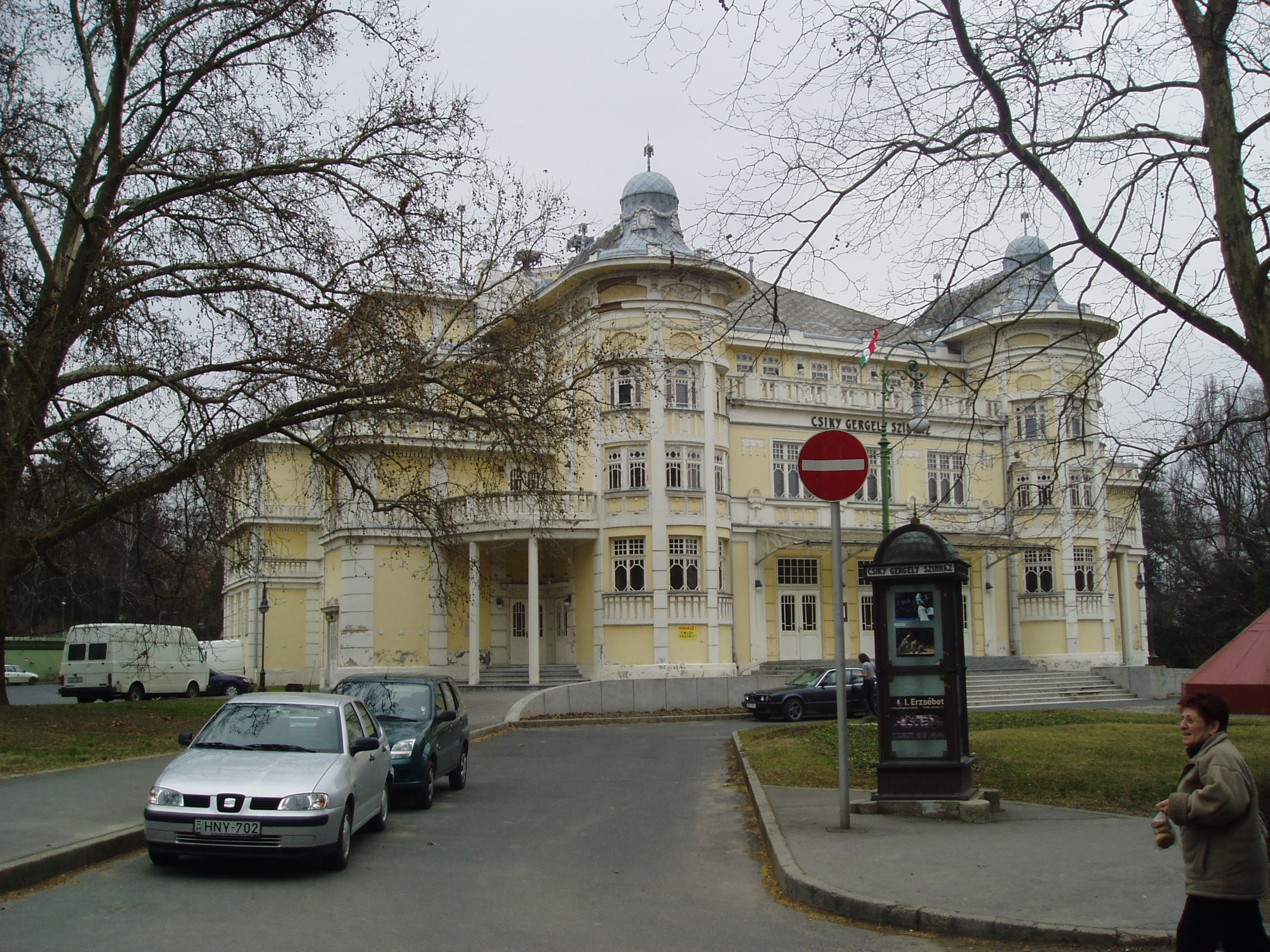 Nyilvános 926 | 1529 | Kaposvár, Rákóczi tér 1. Csiky Gergely Színház | 1911-ben épült szecessziós stílusban Magyar Ede és Stahl József tervei szerint. A maga idejében az ország legmodernebb és legnagyobb vidéki színháza volt. Az erősen leromlott épületet az 1980-as években újították fel. Az első évtizedekben alkalmi társulatok játszottak benne, 1945 után pedig a pécsi színház, illetve a faluszínház játszóhelye volt. Állandó társulata 1955-ben jött létre. Az 1970-es évek elejétől az ország egyik legkiválóbb, mára legendássá vált színházi műhelye lett. A fénykép 2006 márciusában készült. Felh. irod.: Kaposvár és környéke. Kaposvár, Infomark, 2002 Látnivalók Somogy megyében. Miskolc, Well-PRess, 2000 /Vendégváró/ www.csiky.org |