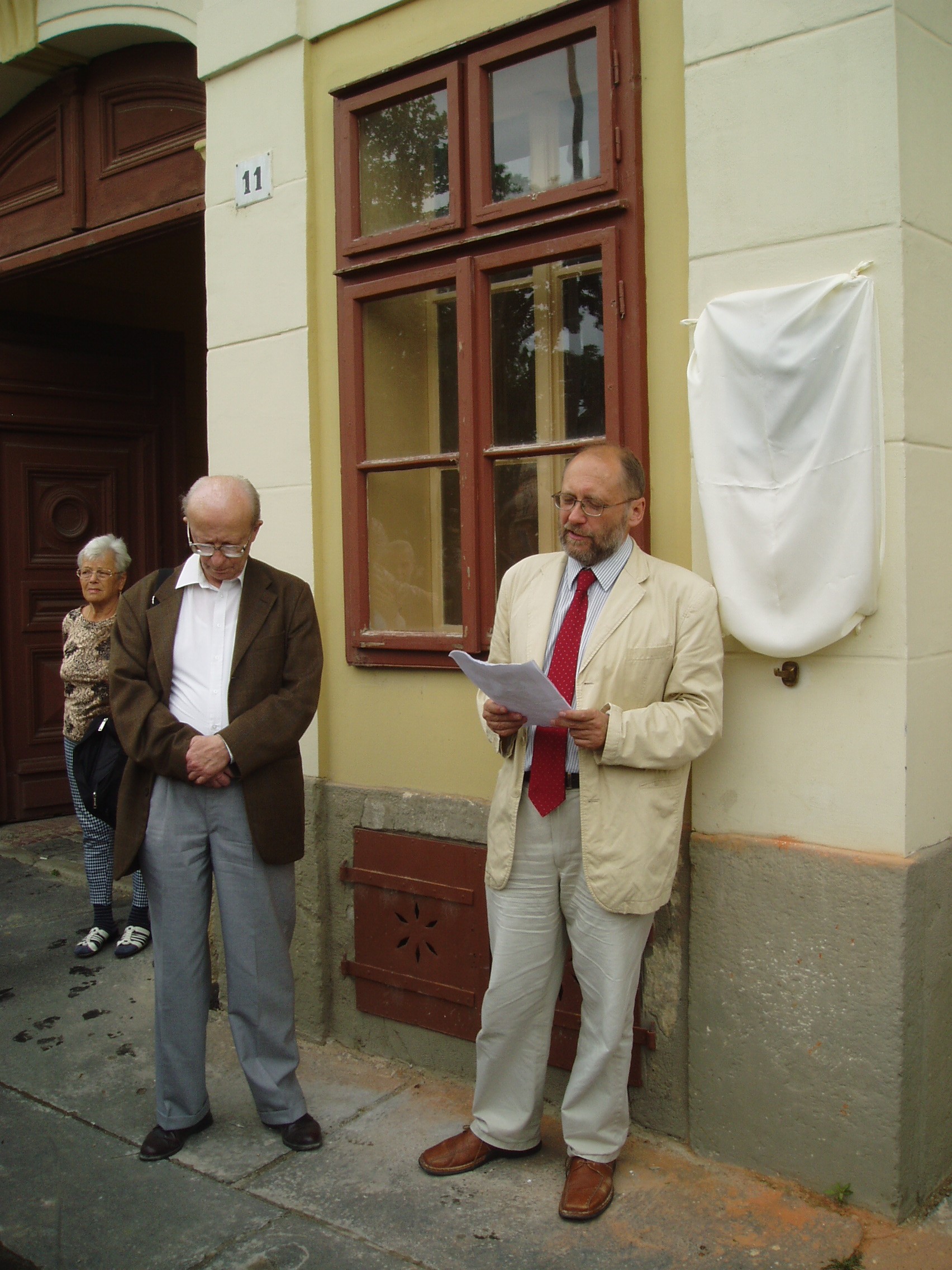 Nyilvános 2542 | 5550 | Strém Kálmán emléktáblájának felavatása 2007. május 28-án Nagykanizsán, Erzsébet tér 11. számú szülőházán. A táblát a Magyar Haydn Társaság állította, az eseményt a Kanizsai Klasszikusok Kulturális és Közhasznú Alapítvány rendezte. | A képen Földes Imre zenetörténész és az avatóbeszédet mondó Malina János zenetörténész, a Magyar Haydn Társaság elnöke. Strém Kálmán zeneszociológus, hangversenyrendező, a legjelentősebb hazai koncertrendező iroda vezetője 1934. május 23-án született Nagykanizsán az Erzsébet tér 11. számú épületben, az ún. Gutmann–palotában. Évtizedekig tevékenykedett az Országos Filharmóniánál, ahol a vidéki osztály vezetőjeként felbecsülhetetlen értékű munkát végzett. 1978-ban a Zeneművész Szövetség ügyvezető titkára lett, ezen a posztján húsz évig tevékenykedett. Közben olyan, a magyar zenei élet húsbavágó kérdéseiről publikált nagyhatású könyveket, mint a Hol vannak a magyar vonósok?, a Lemorzsolódás a zeneiskolákban és a Vitairat a magyar zenei művelődésről. A magyar zenei élet jobbítására közreadott javaslatai közül a — mára sajnos megszüntetett — zenei menedzserképzést ő indíthatta el a Zeneakadémián. A menedzselést nemcsak tanította, hanem a rendszerváltást követően maga is vállalkozni kezdett, s létrehozta a Strém Koncert Kft.-t, amely hamarosan a legnagyobb nem állami hangversenyrendező irodává vált. Strém Kálmán e minőségében is példamutató, áldozatos munkát végzett. Tevékenységének egyik fő iránya a magyarországi Haydn–kultusz erősítése volt: megszervezte és működtette a Fertőd–Eszterházai Nyári Fesztiválokat. Hangversenyrendezői munkájának másik pólusán a kortárs zene állott: ő hívta életre Balatonföldváron a Földvári Zenei Napokat, ahol igaz összművészeti kulturális műhelyt hozott létre (sajnos, mára ez a rendezvénysorozat is megszűnt). Hangversenyeit mindig a legnagyobb gondossággal, európai ízléssel rendezte meg. S bár ő maga nem volt muzsikus, de — mint egy tisztelője megfogalmazta — a hangversenyrendezést művészi fokon művelte. 2005. november 27-én bekövetkezett hirtelen halálával egy korszak zárult le a magyar zenei életben. Batta András, a Zeneakadémia rektora a következő szavakkal méltatta őt: "Olyan fajta ember volt, akiről azt hittük soha nem öregedik meg és nem fárad el. Élete volt a zene és a zene közvetítése. Évente százával szervezett, rendezett hangversenyeket, állt ki jó ügyek mellett, fedezett fel fiatal tehetségeket, adta meg a tiszteletet idős művészeknek." Halála óta már két emléktáblát avattak tiszteletére: Székesfehérváron a Szent István Művelődési Központban és a budapesti Liszt Ferenc Zeneművészeti Egyetemen. Most nagykanizsai szülőházára került fel emléktábla, az emlékező beszédet Malina János zenetörténész, a Magyar Haydn Társaság elnöke tartotta. Az eseményt — természetesen — hangverseny is követte a Jézus Szíve templomban, amelyen Földes Imre tanár úr idézte fel Strém Kálmán alakját a közönség előtt. A hangversenyen közreműködtek: Horváth Anikó (csembaló), Kelemen Barnabás (hegedű), Kokas Katalin (hegedű és brácsa), Kokas Dóra (cselló). |