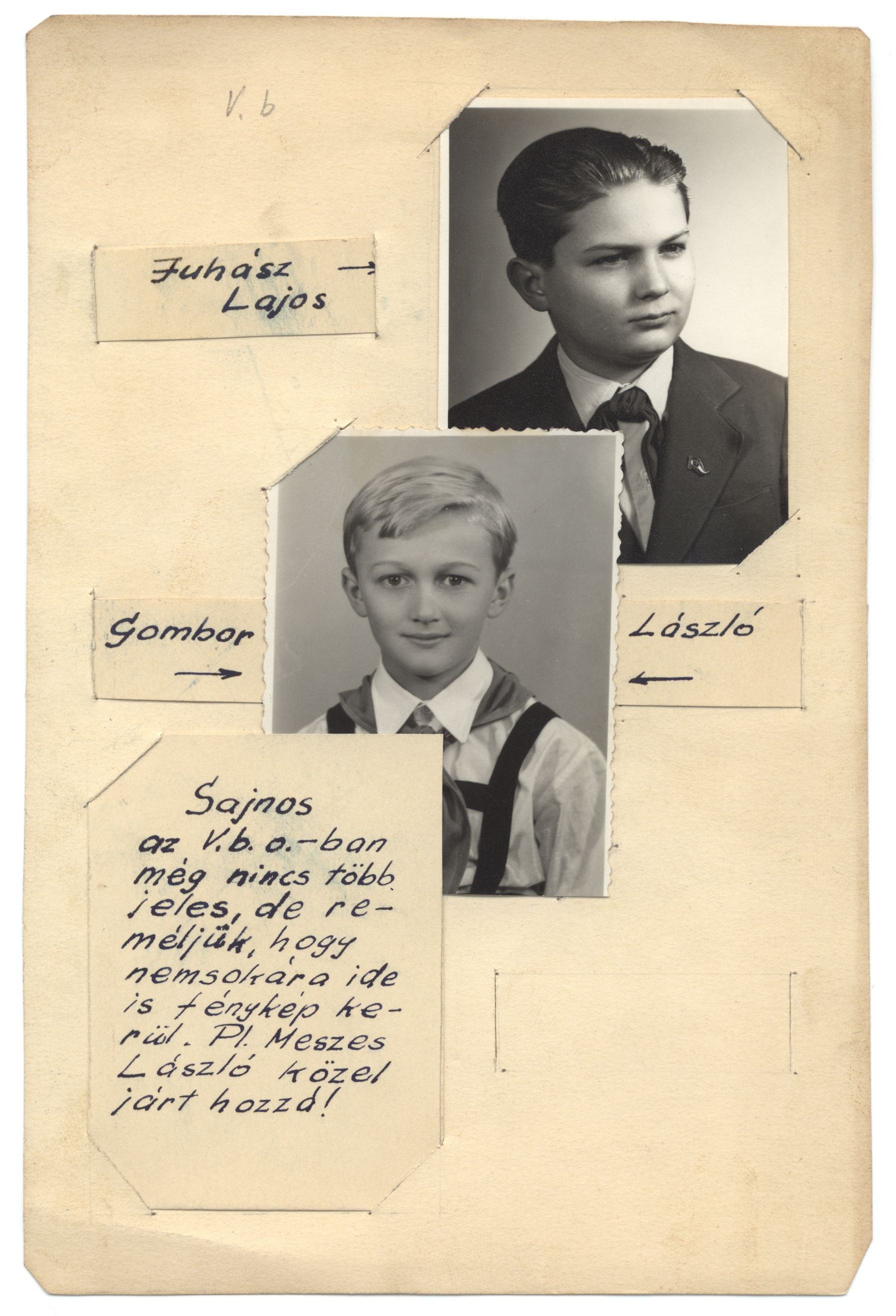 Nyilvános 1249 | 2275 | Zrínyi Iskola - Album a példamutató tanulókról | V.b Juhász Lajos Gombor László Sajnos az V.b.o.-ban még nincs több jeles, de reméljük, hogy nemsokára ide is fénykép kerül. Pl. Meszes László közel járt hozzá! |