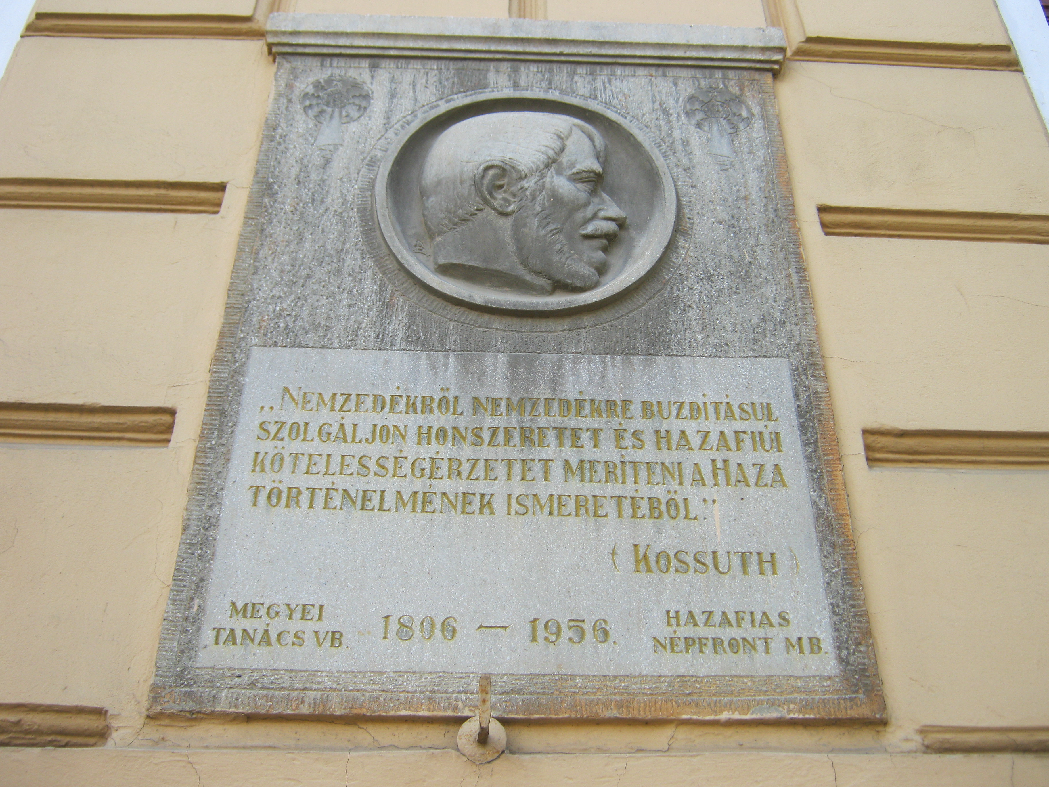 Nyilvános 864 | 1154 | Nyíregyháza, Szent István utca 19. Evangélikus Kossuth Lajos Gimnázium | A megye legrégibb középiskolája. 1808-ban alapították mint evangélikus professzori iskolát (lásd: Nyíregyháza, Luther utca 5.). Nyolc osztályos gimnáziummá 1888-ra fejlesztették fel. Mai épületét ekkoriban, 1887-ben emelték Bobula János tervei szerint. Kossuth Lajos nevét 1921-ben vette fel. Az 1948-ban államosított iskolát 1992-ben kapta vissza az evangélikus egyház. Homlokzatán számos márványtábla emlékezik kiváló diákjaira, tanáraira. Felh. irod.: www.eklg.hu A fénykép 2010 augusztus elején készült |