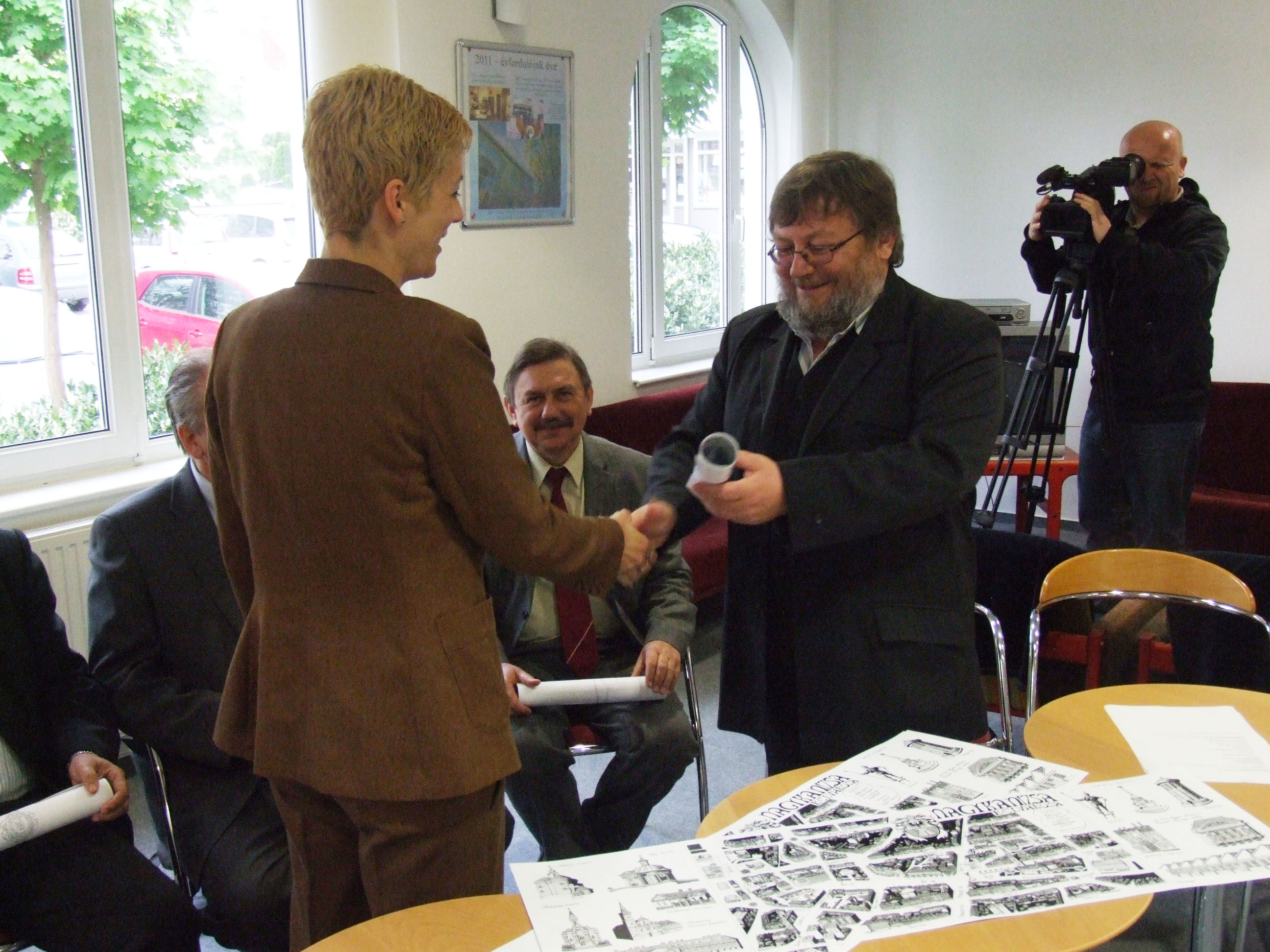 Nyilvános 1749 | 3260 | Nagykanizsa belvárosa – madártávlati kép | 2009 ősze óta folyt az munka, melynek eredményeként elkészült Nagykanizsa belvárosa madártávlati képe, Somogyi Győző alkotása. Bemutatására 2011. április 26-án, kedden 10,30-kor került sor a Halis István Városi Könyvtárban. Sokan támogatták a könyvtár és a Könyvtárpártoló Alapítvány törekvését – mondta el Czupi Gyula, a könyvtár igazgatója és az alapítvány képviselője. Az egész időszakban komoly segítséget jelentett a média képviselőinek támogatása, ezért az alkotást először az anyagi támogatóknak és a média képviselőinek mutatták be. A támogatók közül megjelent a Nagykanizsa Önkormányzatának képviseletében Dénes Sándor alpolgármester, a DKG-EAST képviseletében Szabó József, a nagykanizsai Városvédő Egyesület elnöke, Cserti Tibor, valamint a nagykanizsai Tourinform vezetője, Bali Vera. A magántámogatókat ezen a sajtótájékoztatón Tarnóczky Attila képviselte. A támogatók nem csak tanulmányozhatták az elkészült alkotást, hanem egy-egy példányt magukkal is vihettek ebből az alkalomból. Ugyancsak a kép egy-egy másolatával gazdagodva hagyták el a könyvtárat a média képviselői. A sajtótájékoztatón megjelenni nem tudó Kanizsa Plaza, a Sponzor Tours (Nagykanizsa), valamint a KKK Senior Kosárlabda Csapat később kapják meg a madártávlati képet, akárcsak azok, akik egyéni támogatásukkal segítették az alkotás létrejöttét. A könyvtár 60 éves születésnapjára készült művet nagyobb számban először a május 1-jei ünnepi program azon (300-nál több könyvet kölcsönző) meghívottjai kapják, akik emléklapot is vehetnek át ebből az alkalomból. Május 1-jétől a madártávlati kép meg is vásárolható a könyvtárban. Az érvényes könyvtári tagsággal rendelkezők kedvezményesen juthatnak hozzá. |