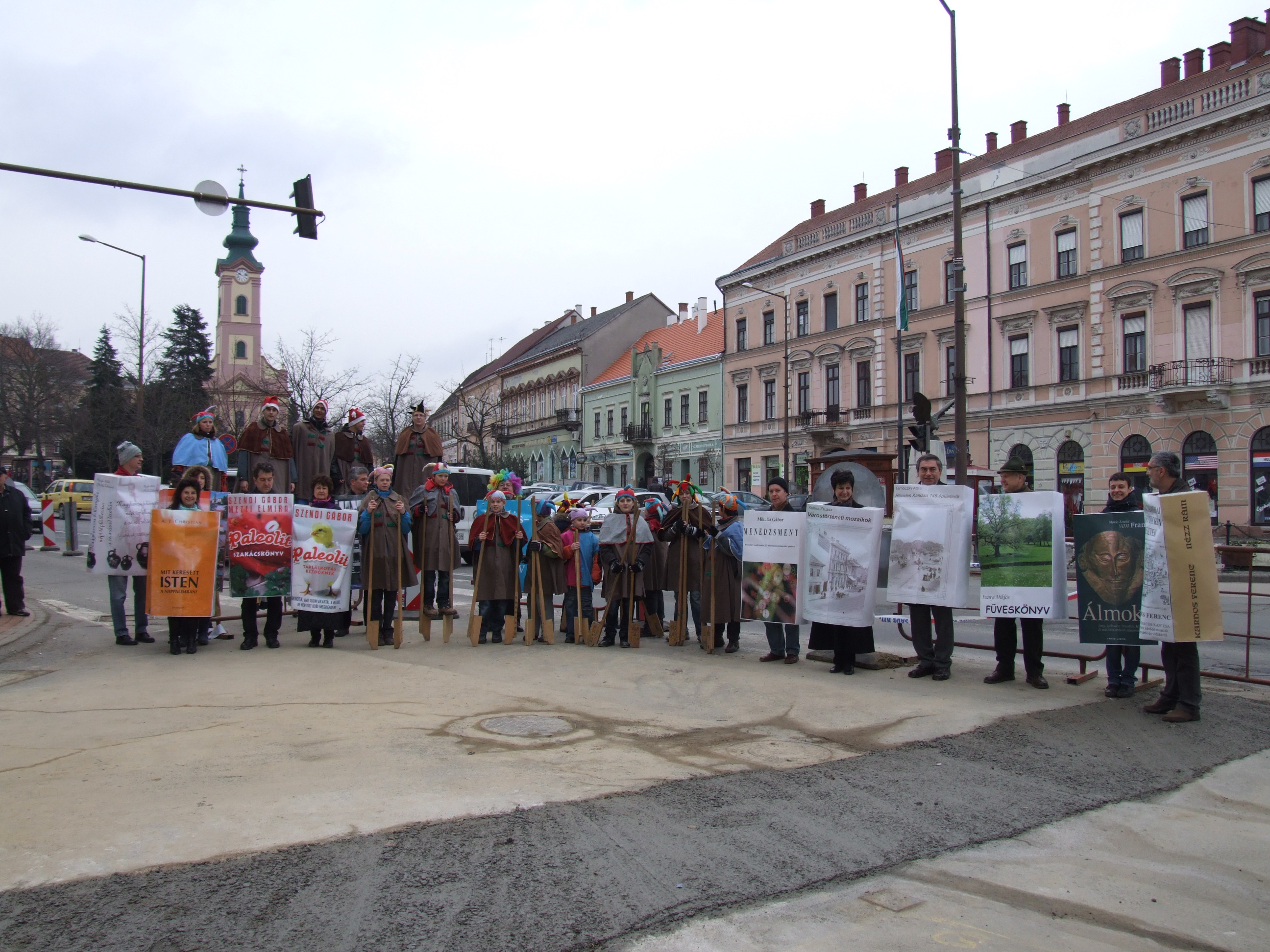 Nyilvános 935 | 1424 | 2013. február 9. A farsangi fánkfesztiválra készülve felhívásban kértük olvasóinkat, hogy öltsék magukra kedves könyvüket. Egy „könyvespolcnyi” jelentkező vette magára kedves olvasmányát, az ő vonulásukról készültek ezek a képek. A környezetükben néhol láthatók a Nagykanizsai Gólyalábasok, akik szintén a könyvtárhoz kötődnek. A „felvonuló kötetek” a könyvtár épületében még megtekinthetők. | |