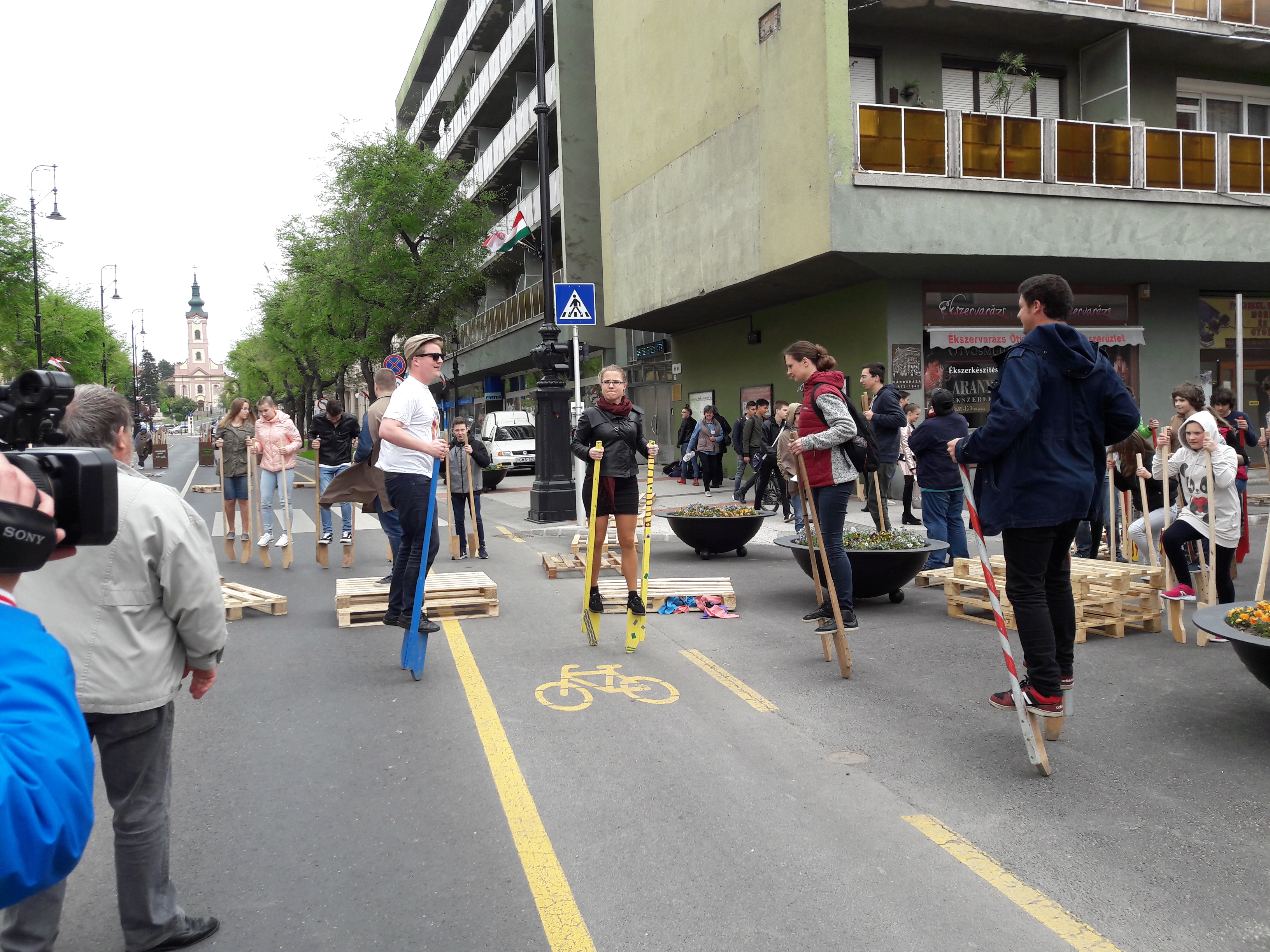 2017.04.27. Tömeges gólyalábra állás a Fő út - Ady u. kereszteződésében