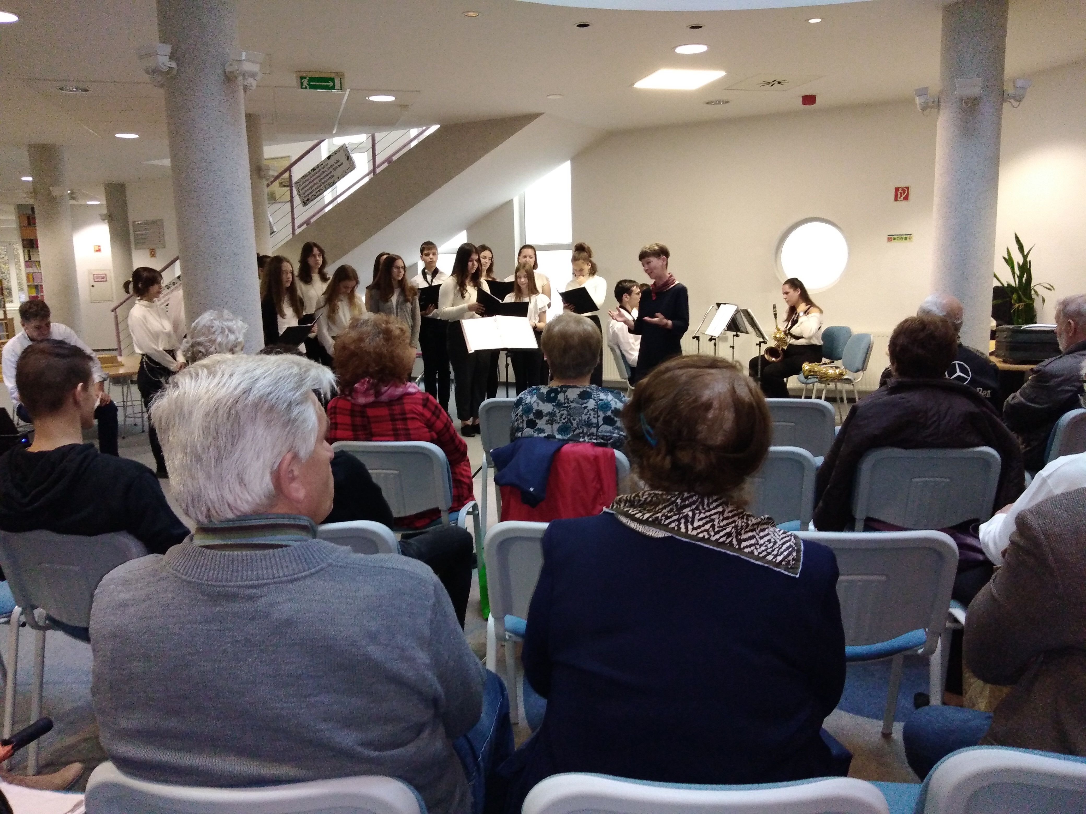 2022.04.22. Zene és egy csészényi könyvtár - zeneiskola kórusa és szaxofon kvartettje